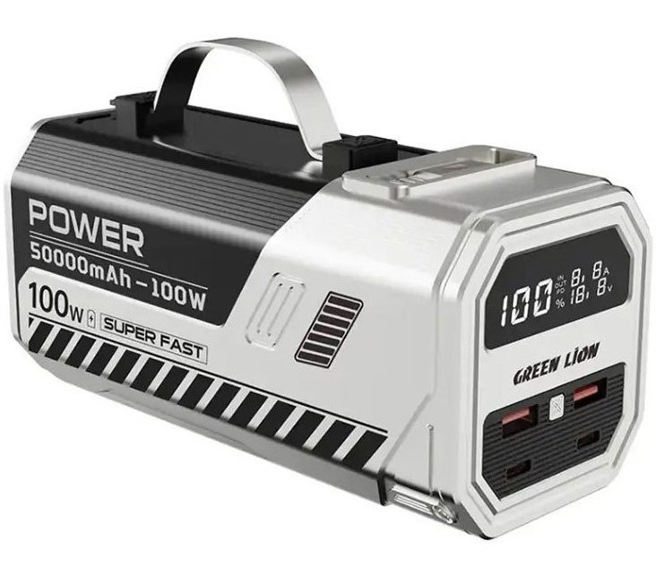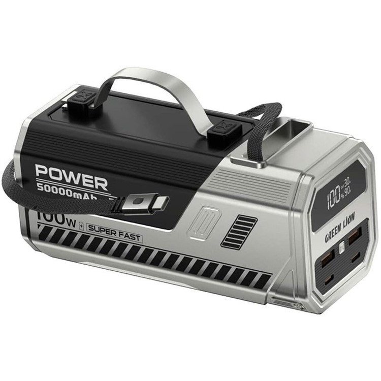 پاوربانک ۵۰۰۰۰ گرین لاین Power Max (مدل GNPWM50PB1SL) یک دستگاه قدرتمند با ظرفیت بالا و توان خروجی ۱۰۰ وات است که به کمک ظرفیت ۵۰۰۰۰ میلیآمپر ساعت، امکان شارژ سریع و مطمئن انواع دستگاههای همراه از جمله گوشیهای هوشمند، تبلت و حتی لپتاپها را فراهم میکند؛